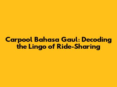 Tips for Mastering Carpool Bahasa Gaul
