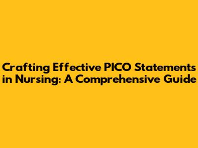 Crafting Effective PICO Statements In Nursing