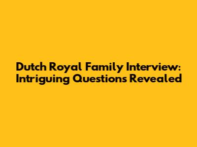 Dutch Royal Family: Intriguing Interview Questions Revealed