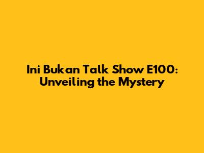 Ini Bukan Talk Show E100: Unveiling The Mystery