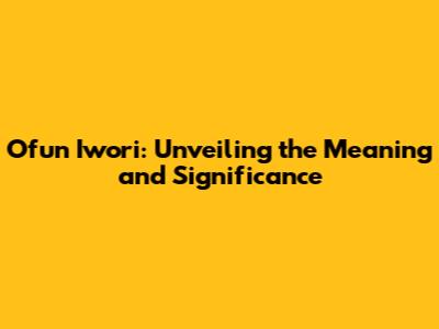 Ofun Iwori: Unveiling The Meaning And Significance