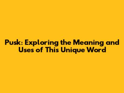 Pusk: Exploring The Meaning And Uses Of This Unique Word