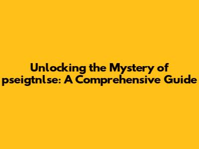 Unlocking The Mystery Of Pseigtnlse: A Comprehensive Guide