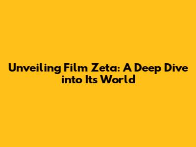 Unveiling Film Zeta: A Deep Dive Into Its World