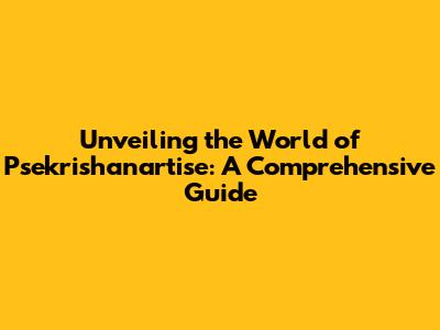 Unveiling The World Of Psekrishanartise: A Comprehensive Guide
